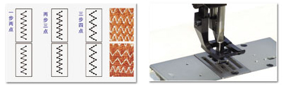 特點:全新上下送料設計可實現(xiàn)一步兩點曲折縫紉;采用半回轉(zhuǎn)大型擺梭、減少換底線次數(shù)實現(xiàn)粗線、厚料、裝飾縫紉;適宜于沙發(fā)、座墊、鞋、皮革制品曲折縫、拼縫、裝飾縫。